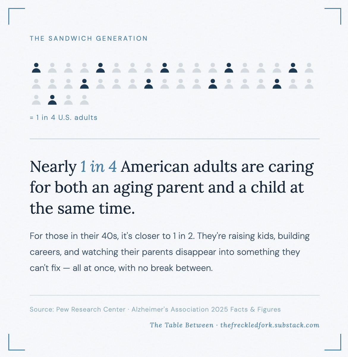 If you’re reading this and you recognize your own parents in mine...call them. Not to ask for something, but just to ask how they are, and then actually wait for the answer. Show up in whatever small way you can before the showing up becomes urgent. Tell them what they’ve taught you while they can still hear it. Because the long goodbye starts earlier than any of us expect, and the things we wish we’d said have a way of outlasting the chance to say them.