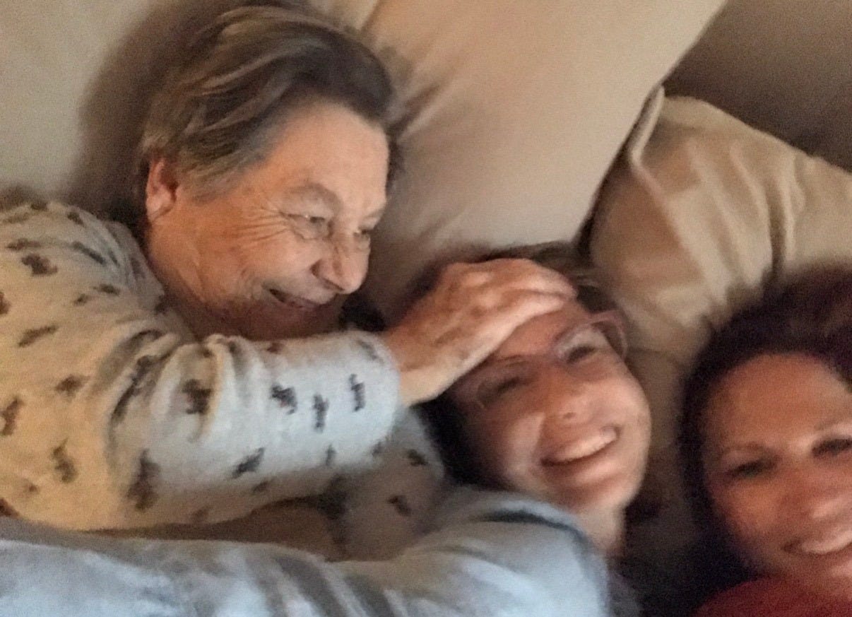 Even beyond the caretaking duties of my Nanny Sis, my dad would also drive across town almost every day to pick up his own mother and bring her to his house so she wouldn’t be alone during that terrifying and isolating time. He’d get her settled, drive her back home later, go back the next day, and do it again. Their relationship has never been simple or easy. She wasn’t always there when he needed her, left him to figure out a lot of things on his own when he was far too young to have to. And still, every day, without ceremony, without making her feel the weight of what she’d cost him, he showed up for her. To this day, he still shows up for her.